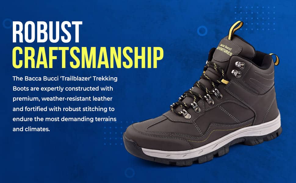 - Robust Craftsmanship: The Bacca Bucci 'Trailblazer' Trekking Boots are expertly constructed with premium, weather-resistant leather and fortified with robust stitching to endure the most demanding terrains and climates.