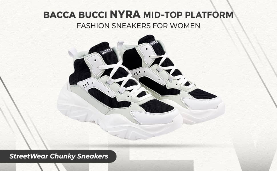 Bacca Bucci NYRA Mid-top Platform Fashion Sneakers For Women | StreetWear Chunky Sneakers