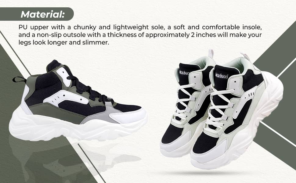 - Material: PU upper with a chunky and lightweight sole, a soft and comfortable insole, and a non-slip outsole with a thickness of approximately 2 inches will make your legs look longer and slimmer.