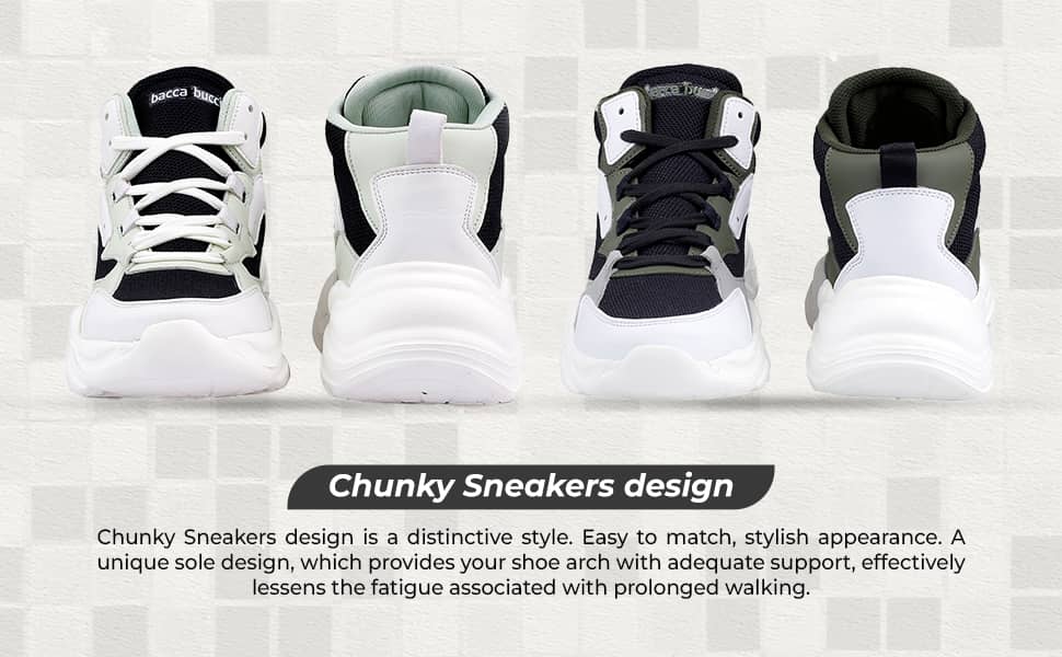 - Chunky Sneakers design is a distinctive style. Easy to match, stylish appearance. A unique sole design, which provides your shoe arch with adequate support, effectively lessens the fatigue associated with prolonged walking.