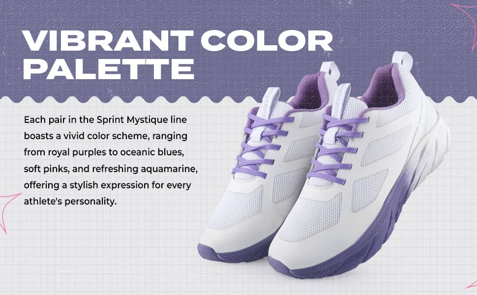 - Vibrant Color Palette: Each pair in the Sprint Mystique line boasts a vivid color scheme, ranging from royal purples to oceanic blues, soft pinks, and refreshing aquamarine, offering a stylish expression for every athlete's personality.