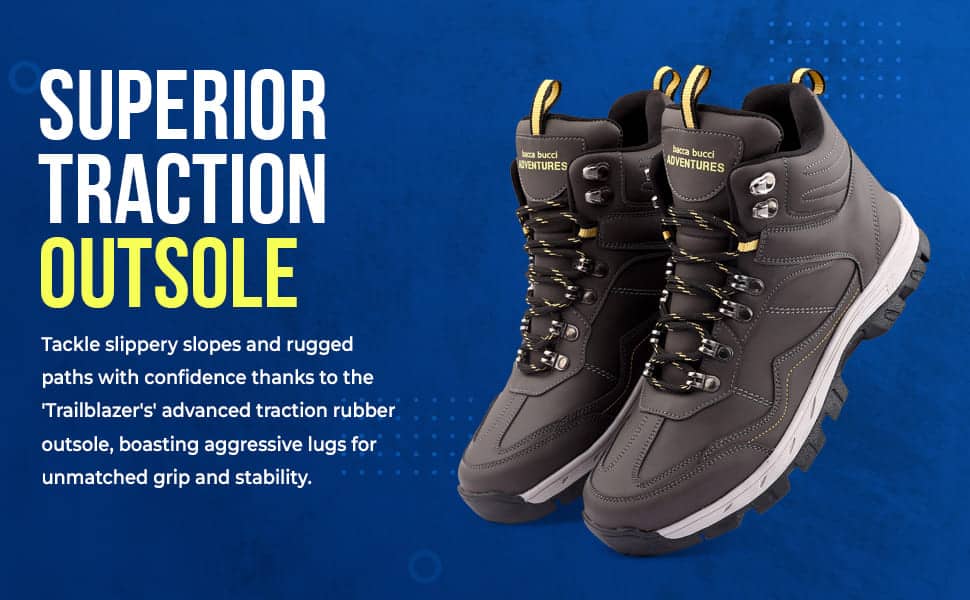- Superior Traction Outsole: Tackle slippery slopes and rugged paths with confidence thanks to the 'Trailblazer's' advanced traction rubber outsole, boasting aggressive lugs for unmatched grip and stability.